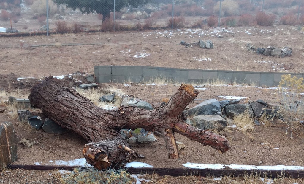 A large tree trunk had fallen on its side during a storm, and this gave me the basis of using it to lay along the side of the future pond. Along the hillside, concrete blocks had been placed to build a wall, which gave me a great basis for the pond as well.