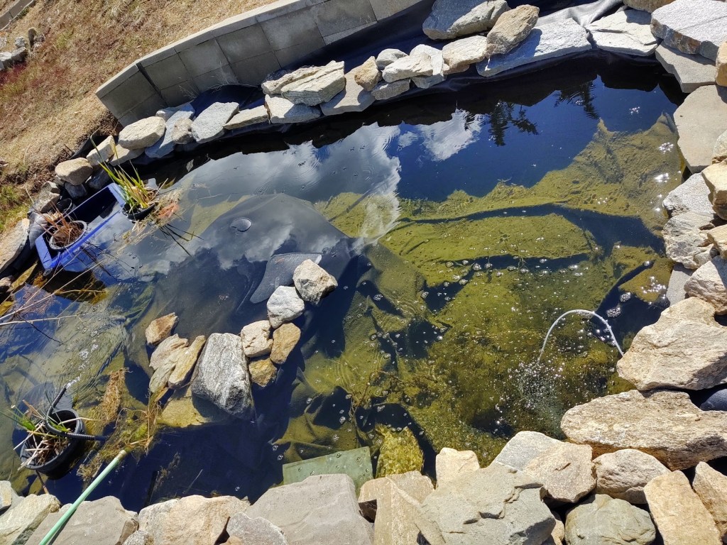 As the pond was wide open to the Sun, I also needed to begin building shade systems around it. This is ongoing, as once a shade system is created, I can build further upon that.